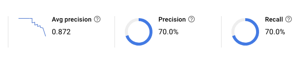 모델 평가를 시간이다. 평가 탭에서 모델의 정밀도 Recall 대한 정보를 있다. 다음과 유사하면 된다.
