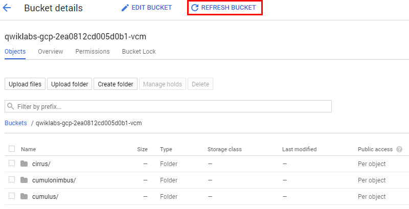 gsutil mb -p $PROJECT_ID \ -c regional \ -l us-central1 \ gs://$PROJECT_ID-vcm/