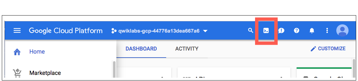 GCP 활용한 퀵랩에서는 항상 그렇듯이 시작은 Google Cloud Shell 진입함으로 시작한다.
