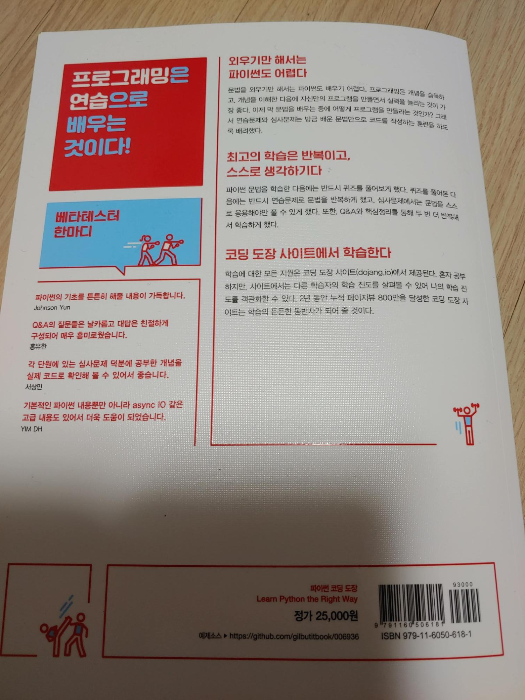 파이썬 코딩도장이라고 구글에 검색하면 나오는 바로 첫 링크에, 이 책의 표지와 동일한 표지의 이미지와 함께 그 내용이 있다. 그 내용이라함은, 이 책의 내용이다.