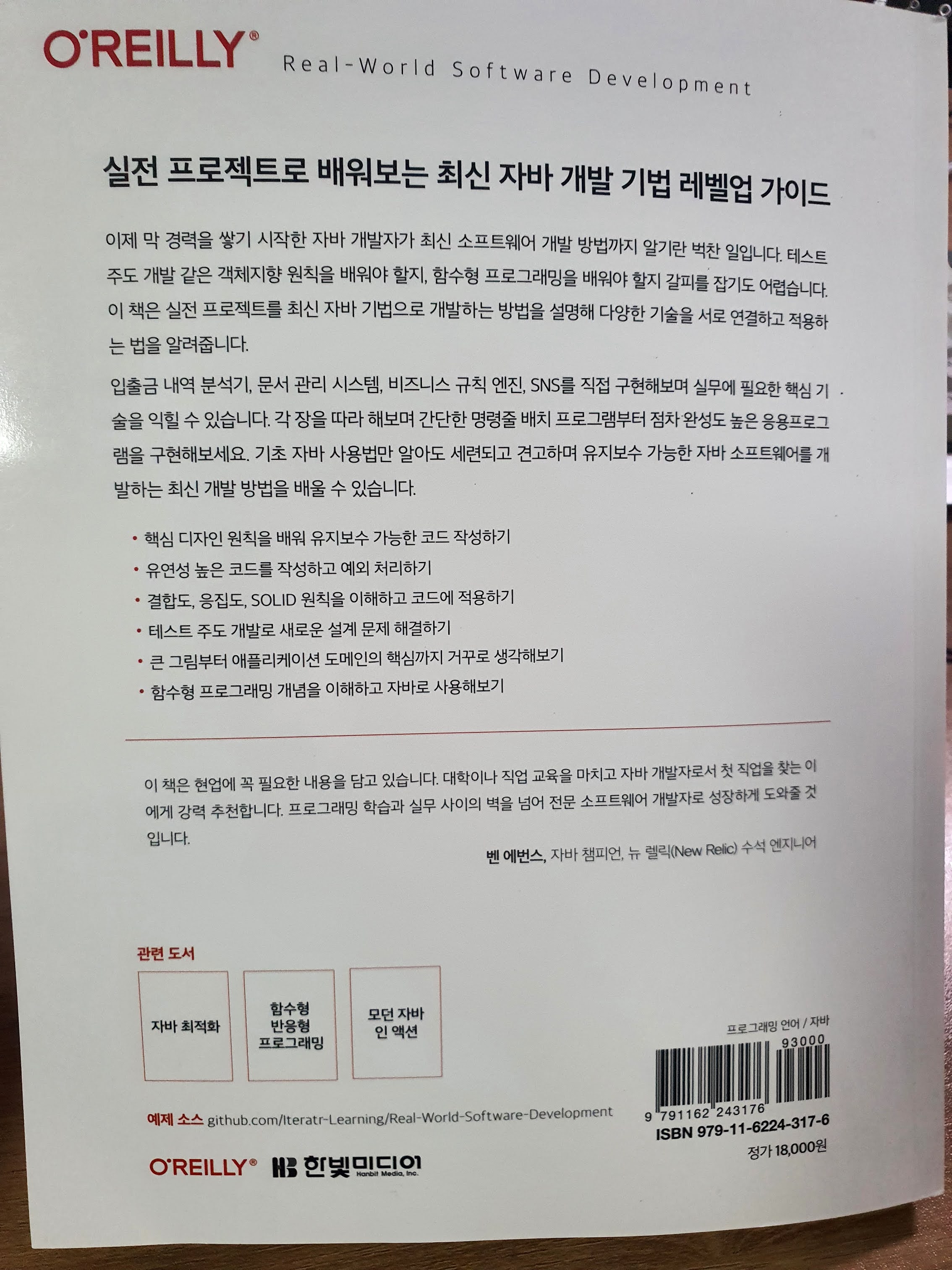 자바는 내가 개발이라는 것에 진지하게 접했던 15년 전 이전부터 지금까지 꾸준히 사랑받아온 언어임에는 틀림이 없다. 리뷰를 하는 현 시점에도 서버 프로그래밍에서는 자바를 빼놓고 말하기는 어렵다. 프로그래밍의 패러다임이 발전해온 만큼 자바도 발맞추어 발전했으며, 그래서 자바를 이용해서 프로그래밍의 다양한 기법이나 원리에 대해서 익히는것이 가능하다는 이야기가 되기도 한다.