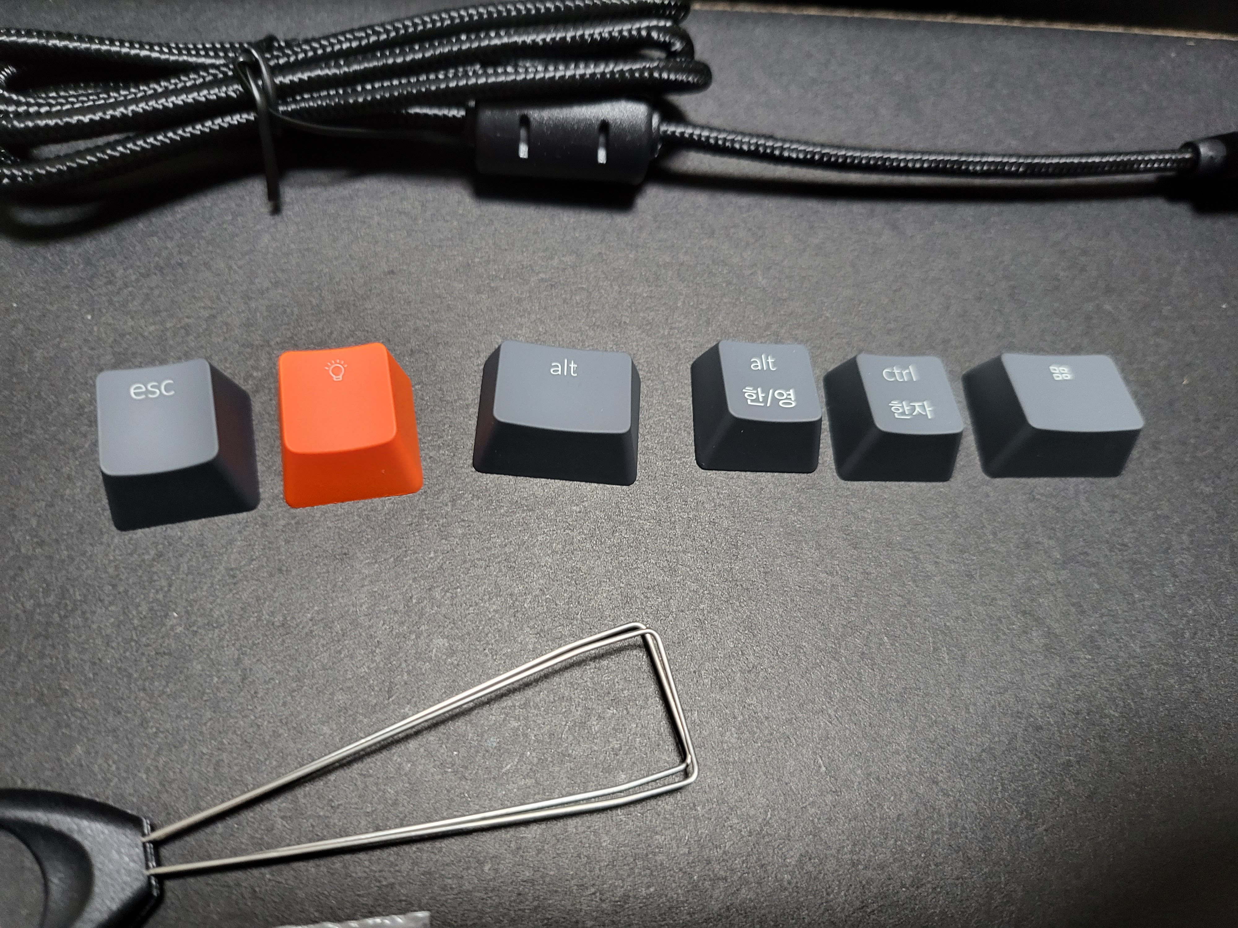 키캡은 ABS 키캡이라는 것을 뒤집으면 바로 알 수가 있다. 그래서 요즘 PBT만 사용하던 나에게는 맨들거리는 키캡의 느낌이 오히려 독특했다. PBT보다는 아쉬운건 사실이지만, 어차피 키캡은 원하는대로 교체할 수 있기에 크게 신경쓰는 부분은 아니었기 때문에 큰 문제가 되지는 않았다.
