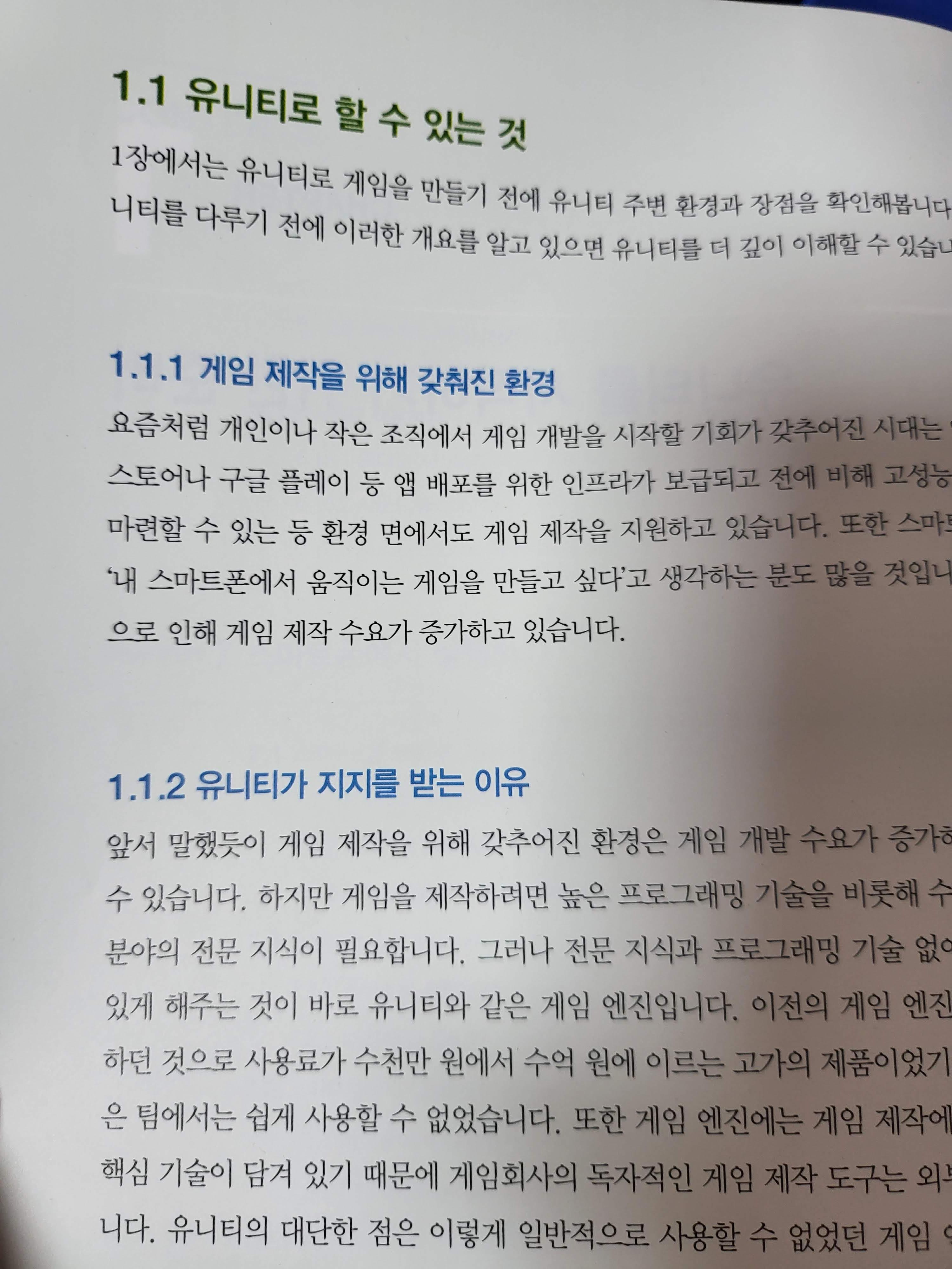 하나는 언리얼 엔진이며, 다른 하나는 오늘 리뷰할 책의 소재인 유니티이다.
