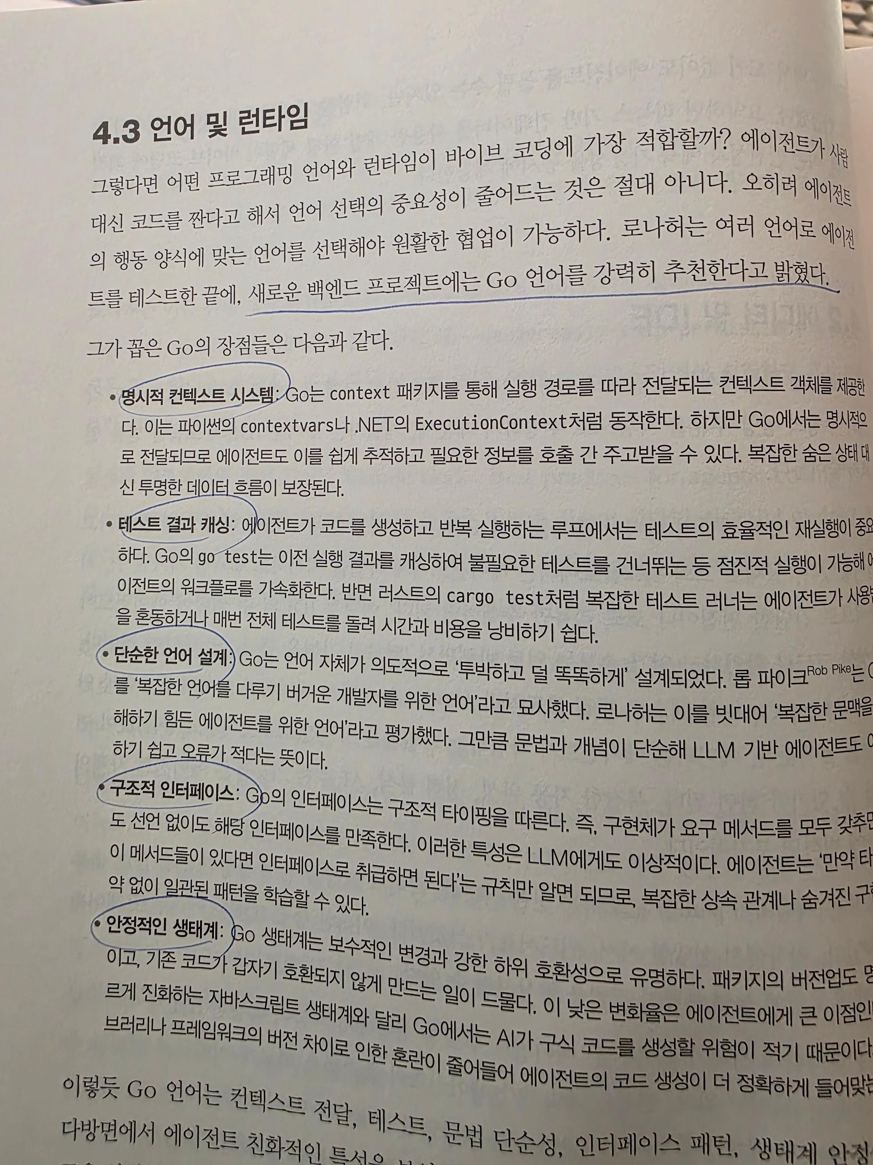 그리고, 이들을 이용해서 개발하게 될 개발 언어를 고를 때 나름 합리적인 선에서 추천해주는 언어가 있는데, 그것은 바로 Go언어이다. 실무에서는 많이 접해보지는 못했지만, 나름 이해하기 편하면서 고성능으로 잘 작동하도록 도와주는 프레임워크라고 생각을 했는데, 여기에서도 추천하는 것이 어느정도 납득은 되었다. 그리고 그 이유를 다음과 같이 나열하고 있다.